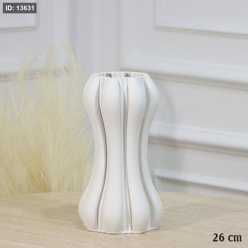 فازة جبص ابيض 26سم شكل اسطواني محزز بابلز حيف معرج EL87/11 =رم3