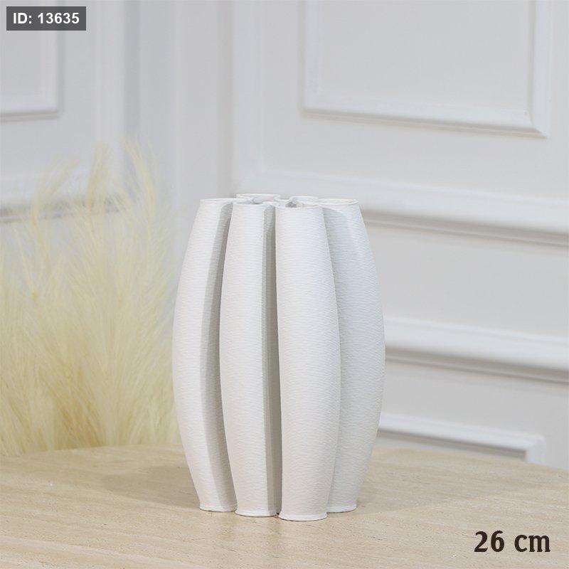 فازة جبص ابيض 26سم شكل معرج محزز حيف ملتوي EL87/15 =رم3