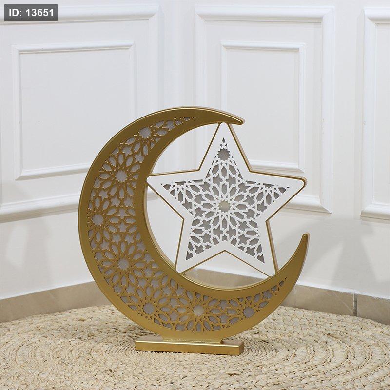 ستاند خشب ذهبي مرسم نجمة وهلال مزخرف اضاءة بطاريات EL43/9 =رم3