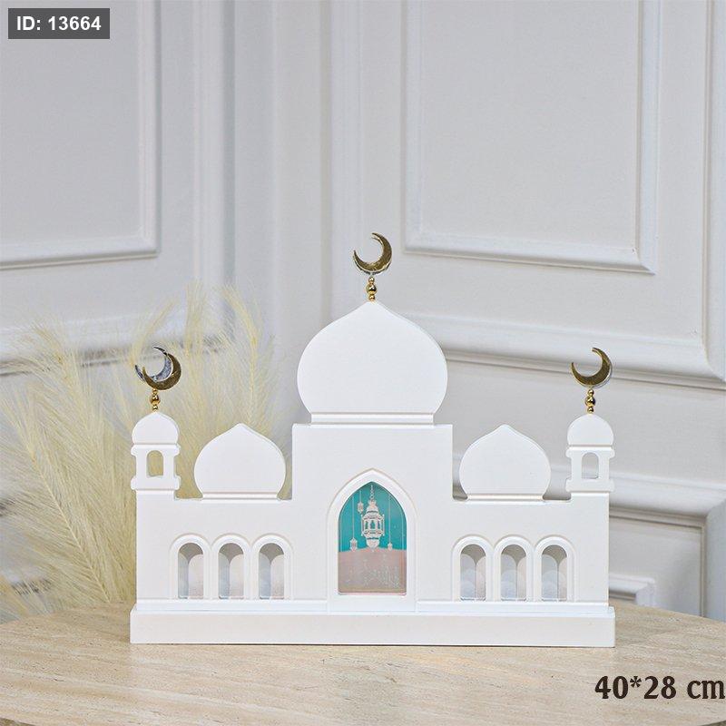 تحفة خشب ابيض 40*28سم شكل مسجد مسكة هلال ذهبي اضاءة بطاريات EL43/19 =رم3