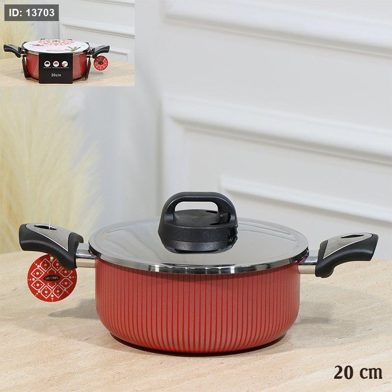 طنجرة SENSTAN احمر 20سم وجه اسود خلية نحل غطا ستانلس EL55/3 =رم3
