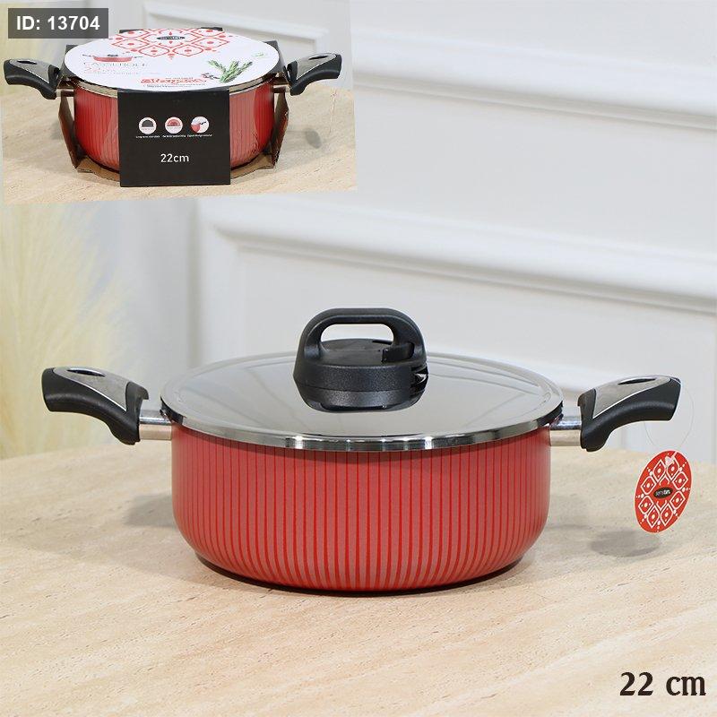طنجرة SENSTAN احمر 22سم وجه اسود خلية نحل غطا ستانلس EL55/4 =رم3