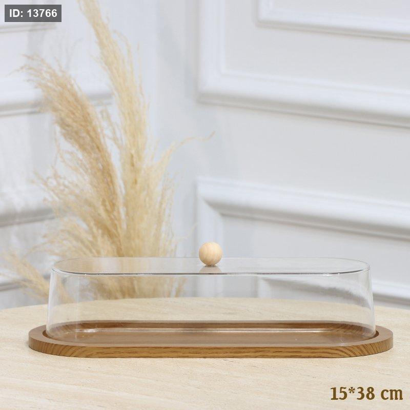مضيفة خشب بني فاتح بيضاوي 38*15سم غطا اكرلك شفاف EL128/3 =رم4