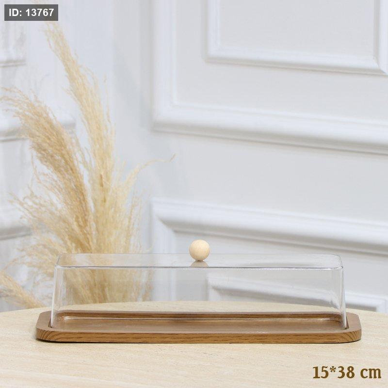 مضيفة خشب بني فاتح مستطيل 38*15سم غطا اكرلك شفاف EL128/4 =رم4