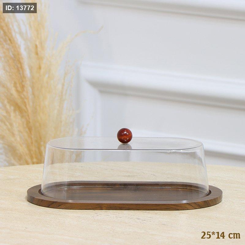 مضيفة خشب بني غامق بيضاوي 25*14سم غطا اكرلك شفاف EL128/9 =رم4