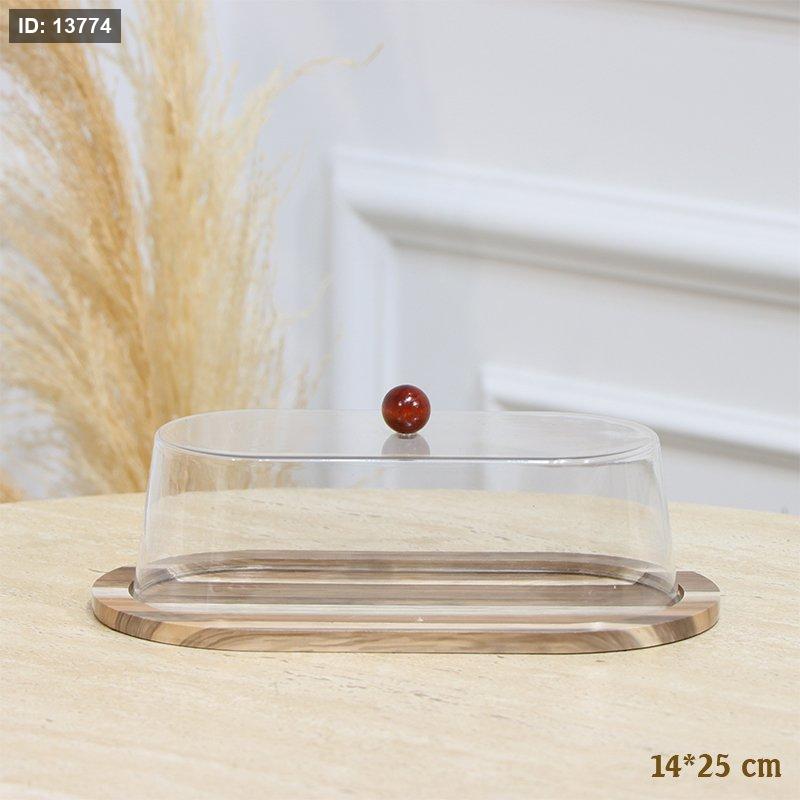 مضيفة خشب بني وبيج بيضاوي 25*14سم غطا اكرلك شفاف EL128/11 =رم4