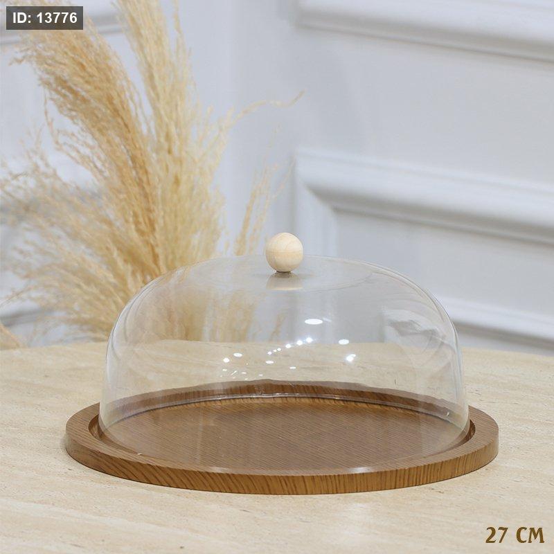 جاط كيك خشب بني فاتح مدور 27سم غطا اكرلك شفاف EL128/13 =رم4