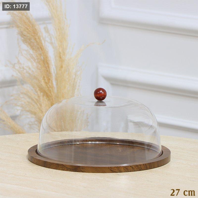 جاط كيك خشب بني غامق مدور 27سم غطا اكرلك شفاف EL128/14 =رم4