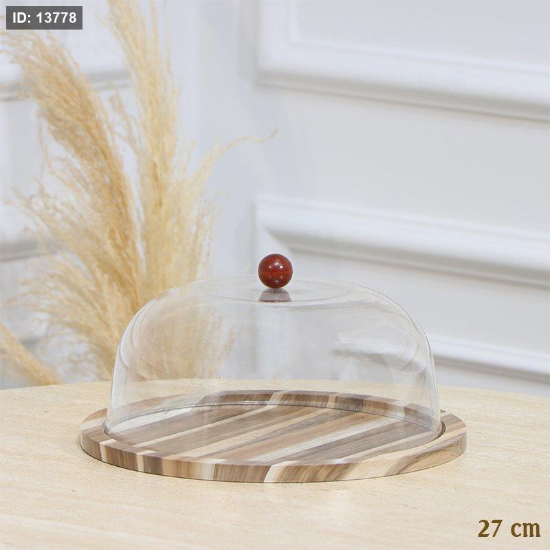 جاط كيك خشب بني وبيج مدور 27سم غطا اكرلك شفاف EL128/15 =رم4