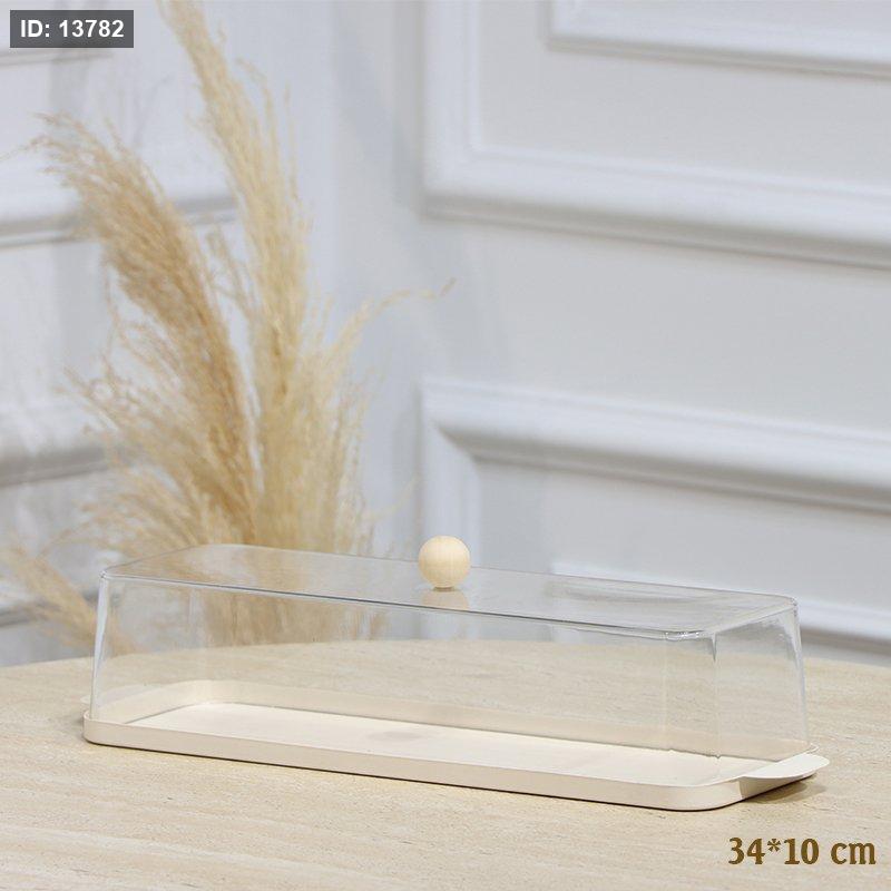 مضيفة تنك بيج مستطيل 34*10سم غطا اكرلك شفاف بيدين EL128/20 =رم4