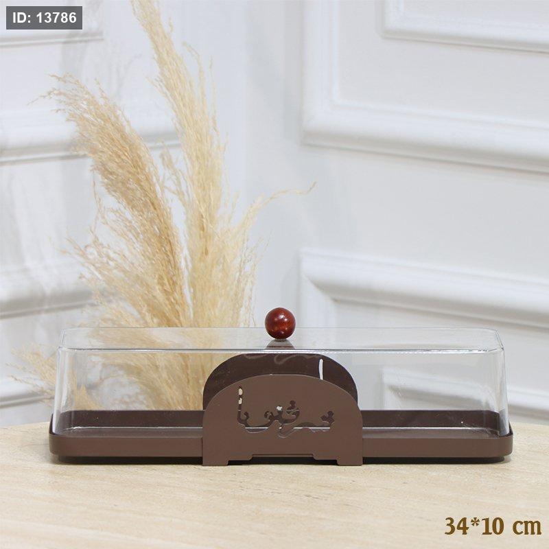 مضيفة تنك بني مستطيل 34*10سم غطا اكرلك شفاف مكتب شرفتونا EL128/24 =رم4