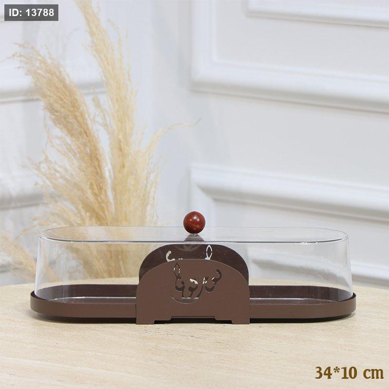 مضيفة تنك بني بيضاوي 34*10سم غطا اكرلك شفاف مكتب نورتونا EL128/26 =رم4
