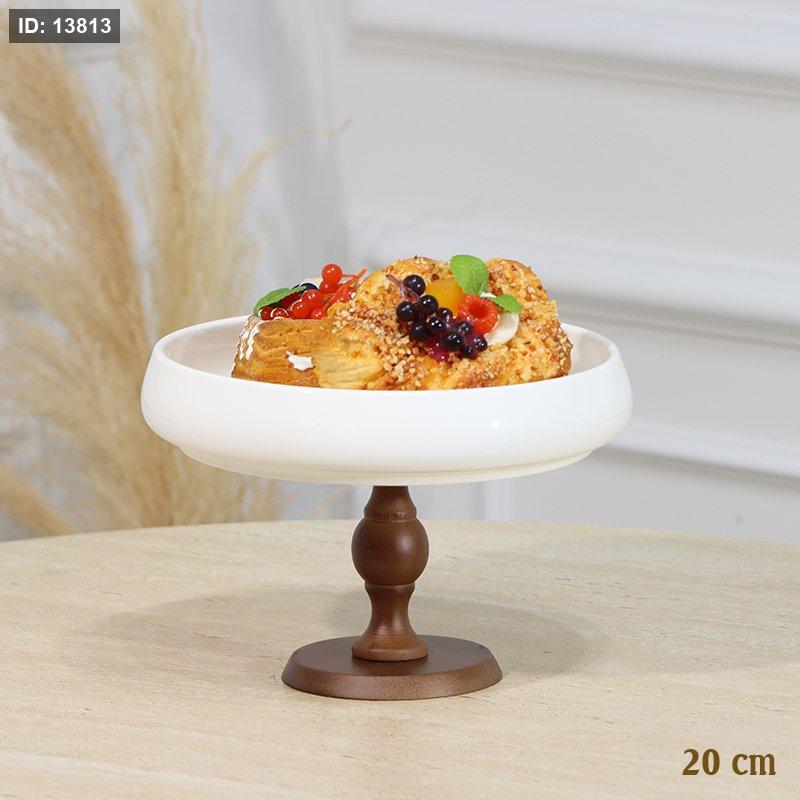 مضيفة بورسلان ابيض مدور 20سم برجل خشب بامبو EL1/8 =رم4