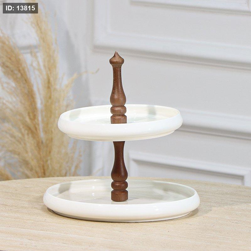 مضيفة مدور 2 طبقة بورسلان ابيض مسكة خشب EL1/10 =رم4