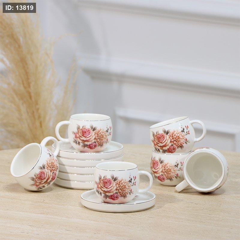 طقم فناجين قهوة 6/6 قدرة ابيض مرسم ورد جوري EL1/15 =رم4