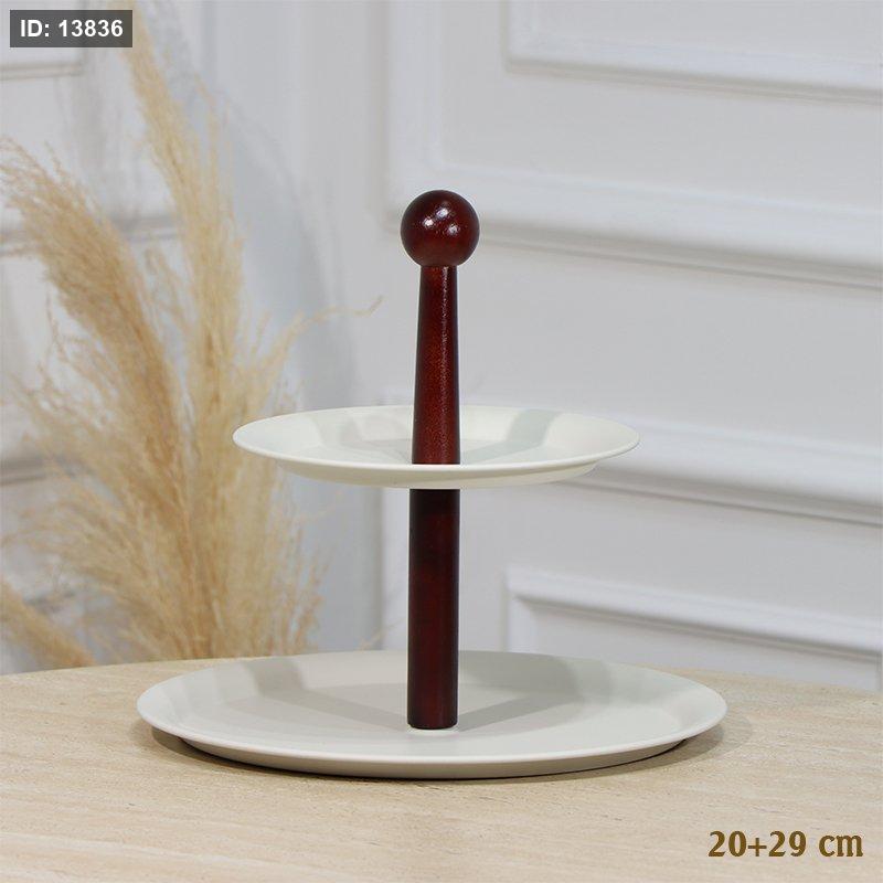 مضيفة 2طبقة تنك بيج مدور 29+20سم مسكة خشب بني غامق EL54/14 =رم4