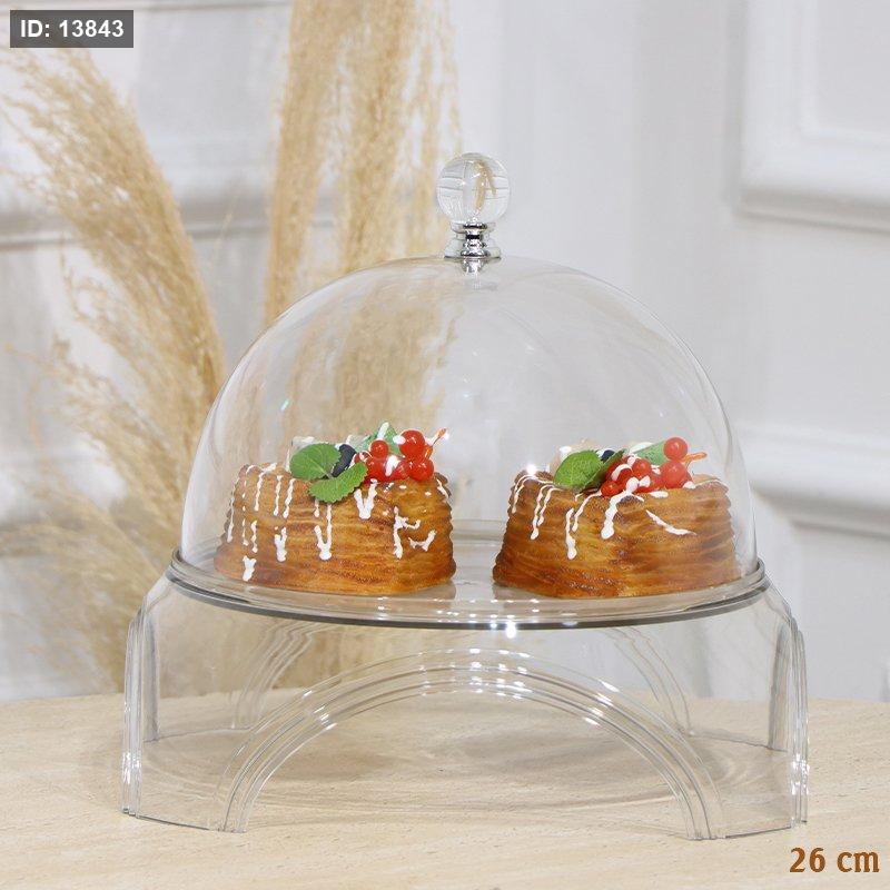 مضيفة مدور 26سم اكرلك شفاف غطا قبة بارجل مسكة كرستال EL104/4 =رم5