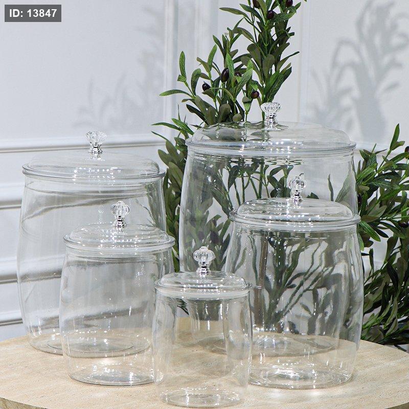 طقم مضايف سكاكر/5 احجام شكل جرة اكرلك شفاف EL104/10 =رم5
