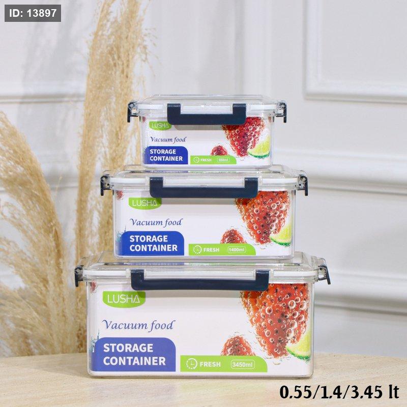 طقم طبروير/3 0.55/1.4/3.45لتر مستطيل اكرلك شفاف بيدين سكني كبس EL12/5 =رم5