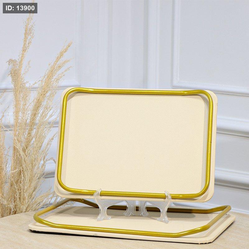 طقم صواني /2 مستطيل اطار تنك ذهبي وجه جلد كريمي بيدين لف EL113/3 =رم6