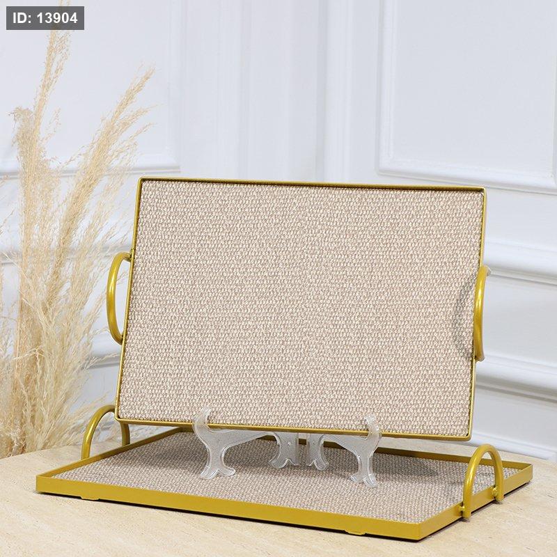 طقم صواني /2 مستطيل اطار تنك ذهبي وجه قماش بيج وبني بيدين مقبض EL113/7 =رم6