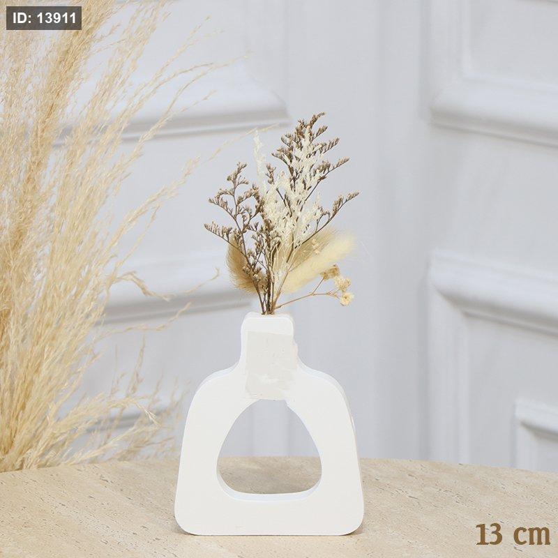 فازة ديكور 13سم جبص ابيض ت.ك12ورد بيج مربع EL113/14 =رم6