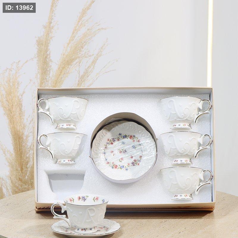 طقم فناجين قهوة 6/6 بورسلان ابيض مكتب واطار داخلي مرسم وردة EL190/8 =ت.ش1