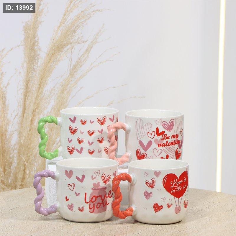 ماغ بورسلان ابيض مدور مرسم قلوب احمر EL157/31 =ت.ش1