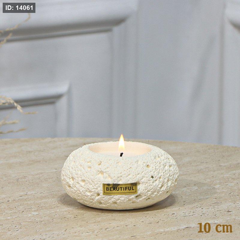 شمعة جبص بيج 10سم 1 عين بيضاوي شمع ابيض برجل EL161/31 =ت.ش1