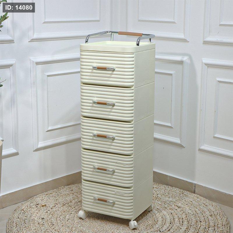 عربية خضار 5 طبقة بلاستك ابيض عجلات EL104/17 =ت.ش1