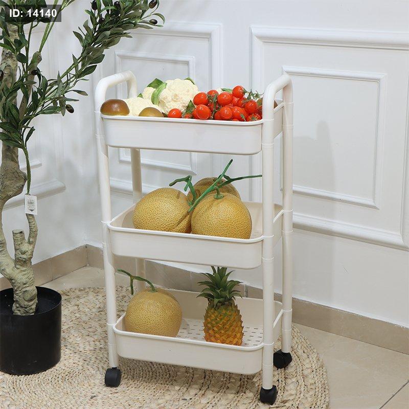 سلة خضار مستطيل مخرم 3 طبقة بلاستك ابيض عجلات EL178/8 =ت.ش2