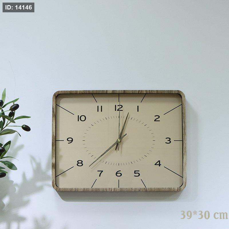 ساعة بلاستك مستطيل 39*30سم اطار خشبي غامق مكتب ارقام بالعرض اسود EL153/2 =ت.ش2