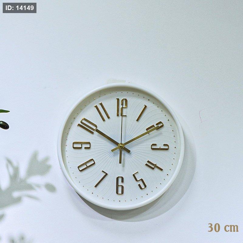 ساعة مدور 30سم بلاستك ابيض وجه محزز مكتب ارقام ذهبي EL153/5 =ت.ش2
