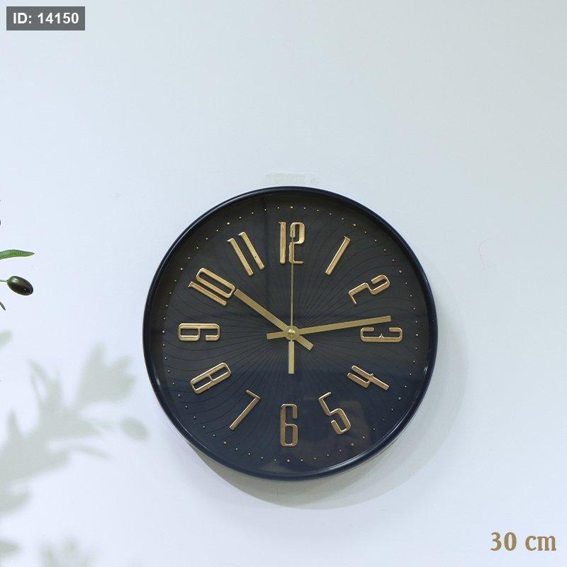 ساعة مدور 30سم بلاستك اسود وجه محزز مكتب ارقام ذهبي EL153/6 =ت.ش2