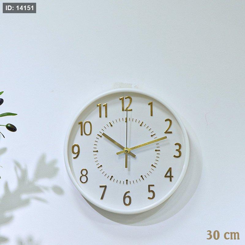 ساعة مدور 30سم بلاستك ابيض وجه مكتب ارقام ذهبي EL153/7 =ت.ش2