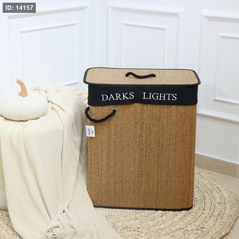 سلة غسيل بيضاوي قصب خشبي وجه اسود قماش بغطا EL154/5 =ت.ش2