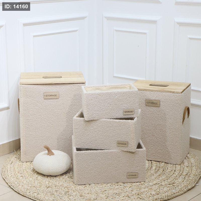 طقم/5 2 سلة غسيل بغطا +3 صندوق مستطيل خشب وجة فرو كابتشينو EL58/2 =ت.ش2