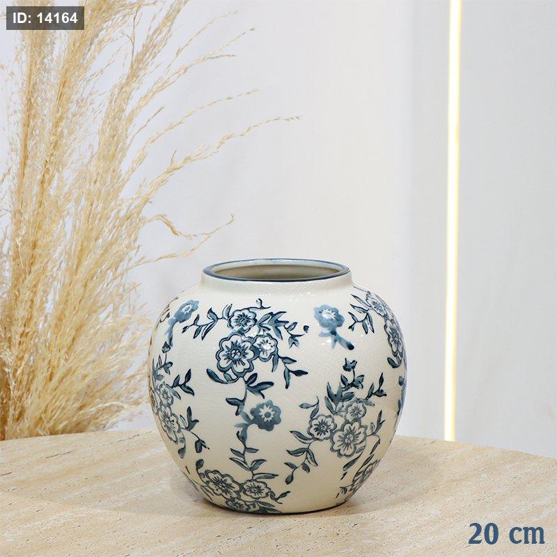 فازة بورسلان مدور 20سم بيج لميع مرسم ورد ازرق EL98/3 =ت.ش2