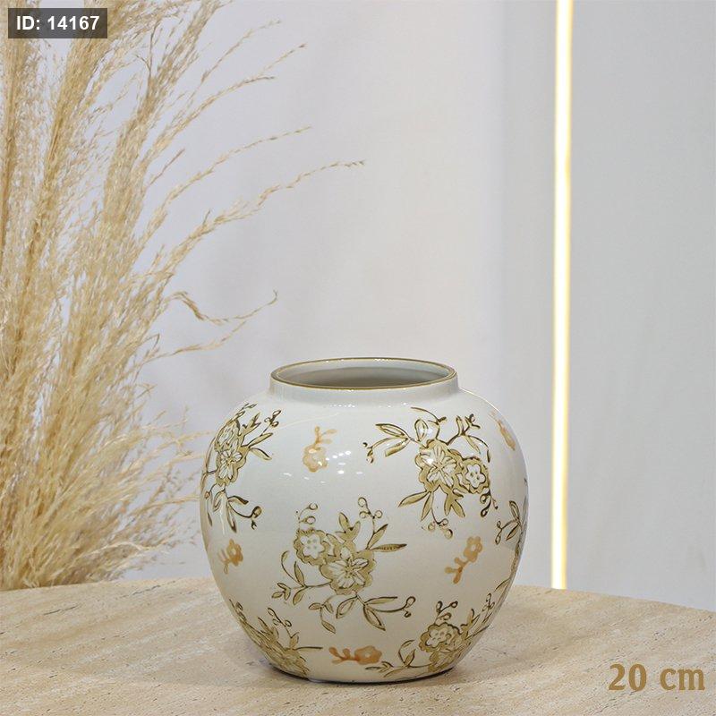 فازة بورسلان بورسلان مدورر 20سم سم بيج لميع مرسم ورد EL98/6 =ت.ش2
