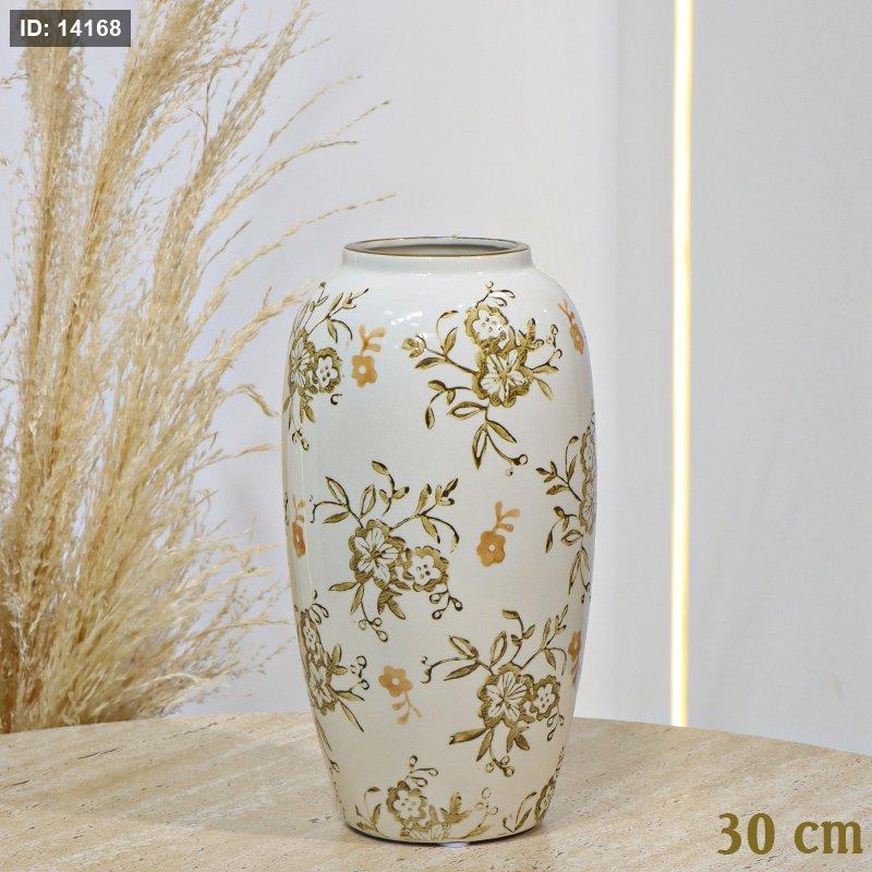 فازة بورسلان بورسلان بيضاوي 30سم سم بيج لميع مرسم ورد EL98/7 =ت.ش2