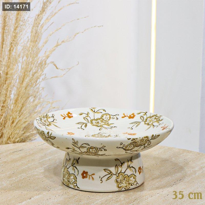 جاط فواكة بورسلان بيضاوي 35سم سم بيج لميع مرسم ورد برجل EL98/10 =ت.ش2