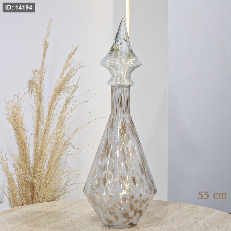 فازة زجاج هرم 55سم موشح ابيض وبني لميع EL165/18 =ت.ش2