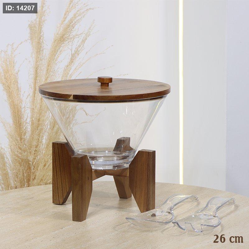 جاط سلطة مدور26سم اكرلك شفاف غطاوقاعدة خشب بامبو غامق +2 ملعقة EL109/14 =ت.ش2