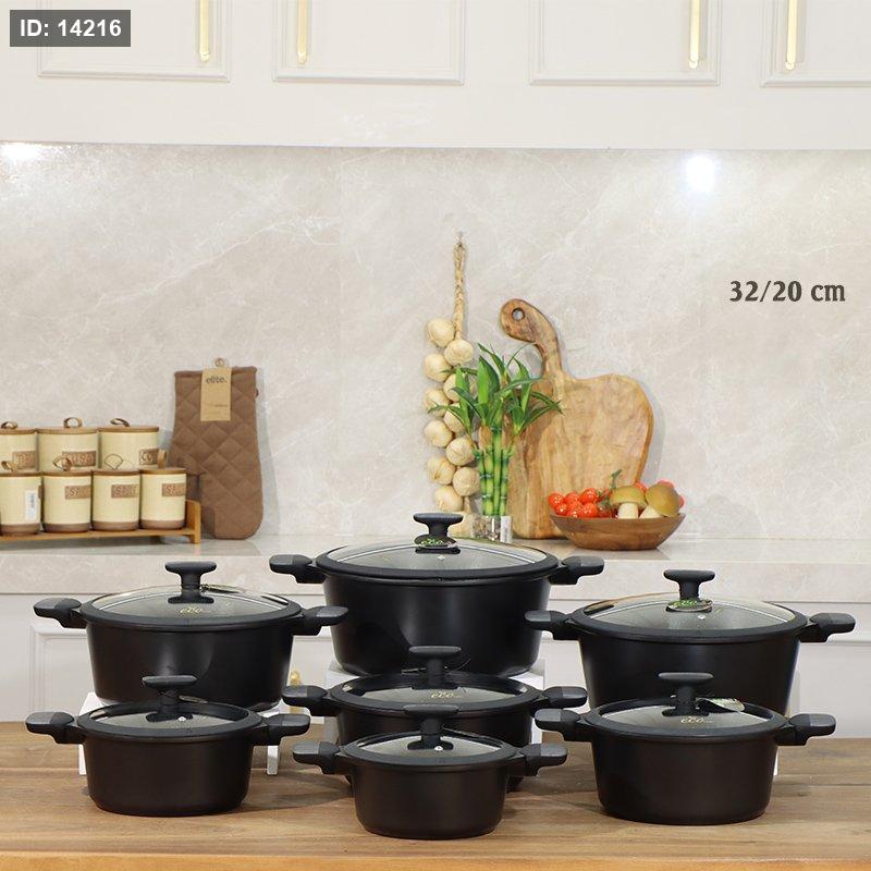 طقم طناجر/7 MANILLA جرانيت مدور 20/32سم اسود ماط يد جلد ++3