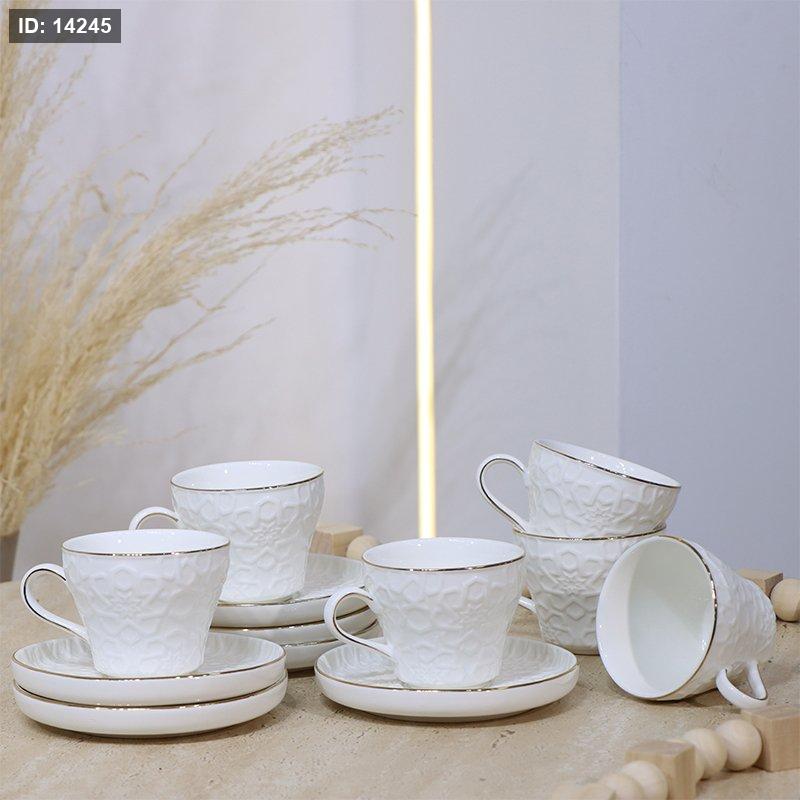 طقم فناجين شاي 6/6 بورسلان ابيض مزخرف اسلامي ST116A-WHITE ++و