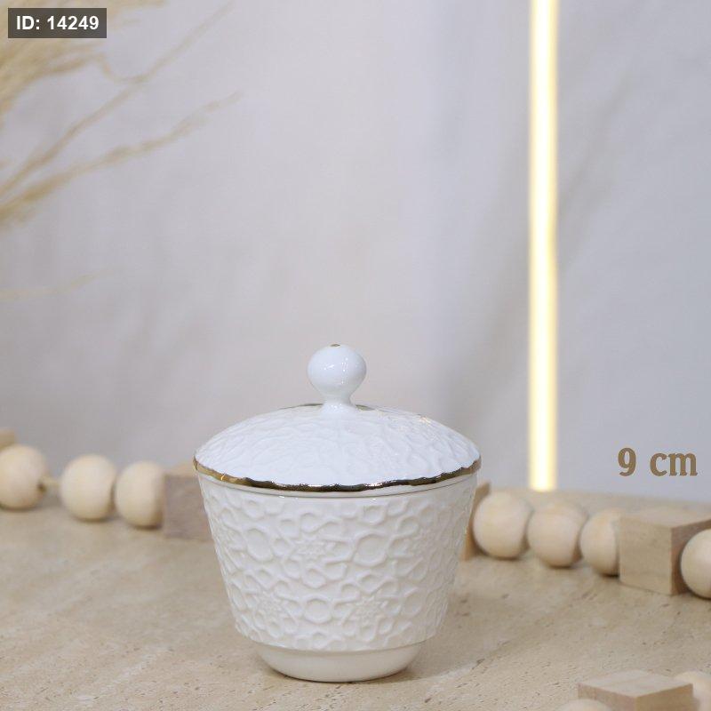 مضيفة 9سم مدور جور بورسلان ابيض مزخرف اسلامي CAN57-WHITE ++و