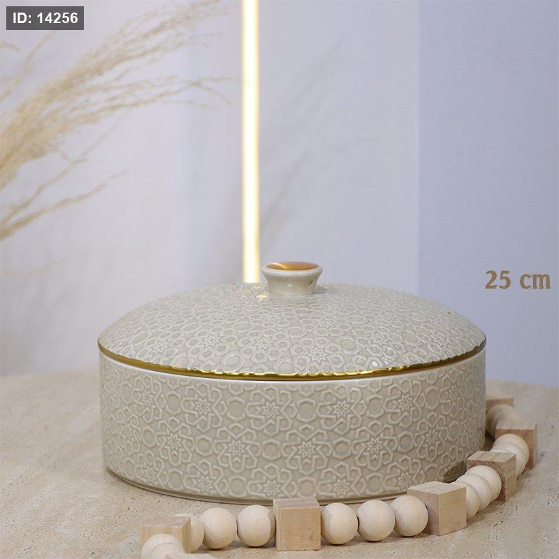 مضيفة 25سم مدور بورسلان بيج مزخرف اسلامي CAN56A-KHAKI ++و