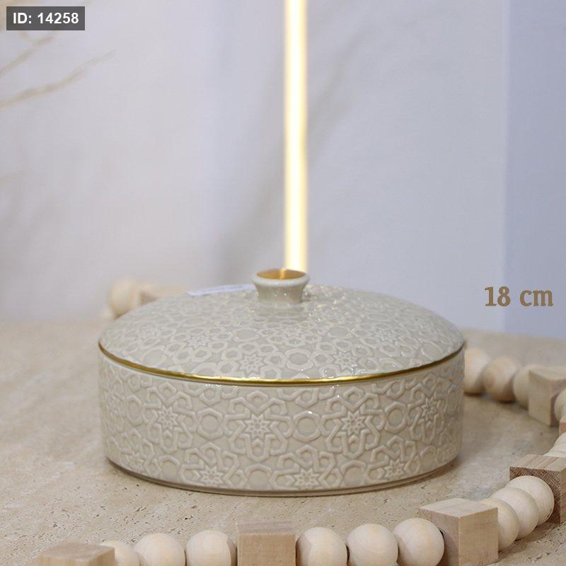 مضيفة 18سم مدور بورسلان بورسلان بيج مزخرف اسلامي CAN56B-KHAKI ++و