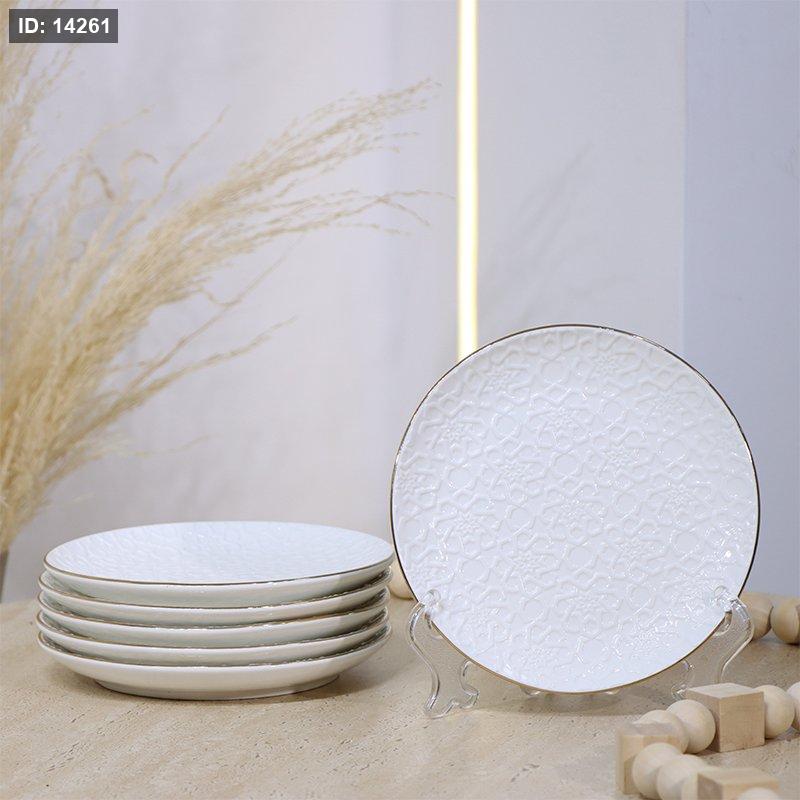 طقم صحون فواكة /6 مدور بوسلان ابيض مزخرف اسلامي Y07-6/S-WHITE ++و