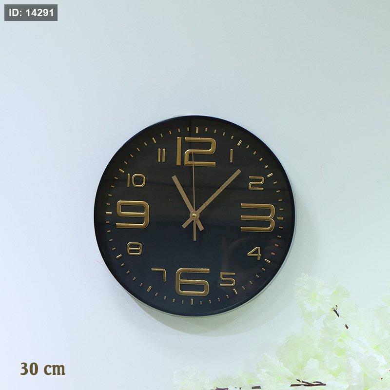 ساعة حائط مدور 30سم بلاستك اسود مكتب ارقام ذهبي EL183/3 =رم7